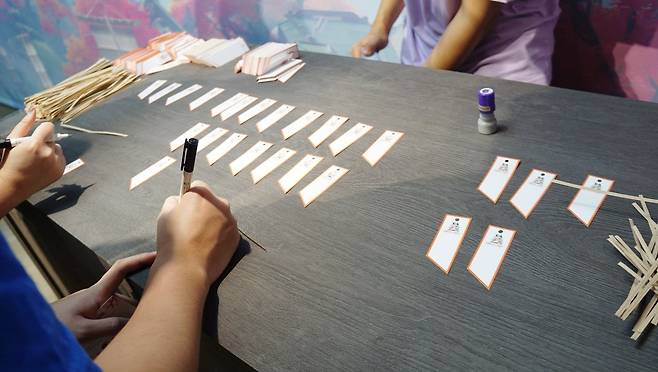 소원을 적어 나무에 달아볼 수 있습니다. 대부분 픽업, 뽑기… 그런거 비셨더라고요.