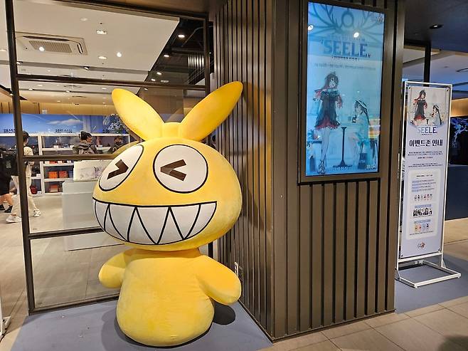 벽면 매대 사이에 있는 '팝업 시리즈: SEELE 아크릴 스탠드'의 대형 버전. 이번 팝업스토어의 대표 이미지이기도 하죠.