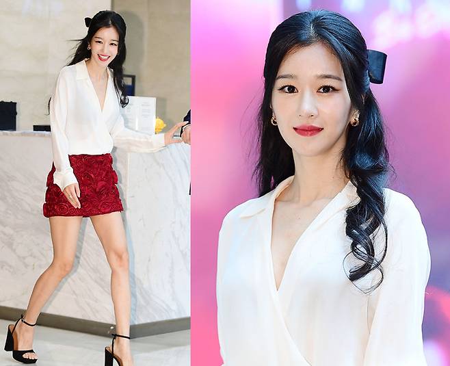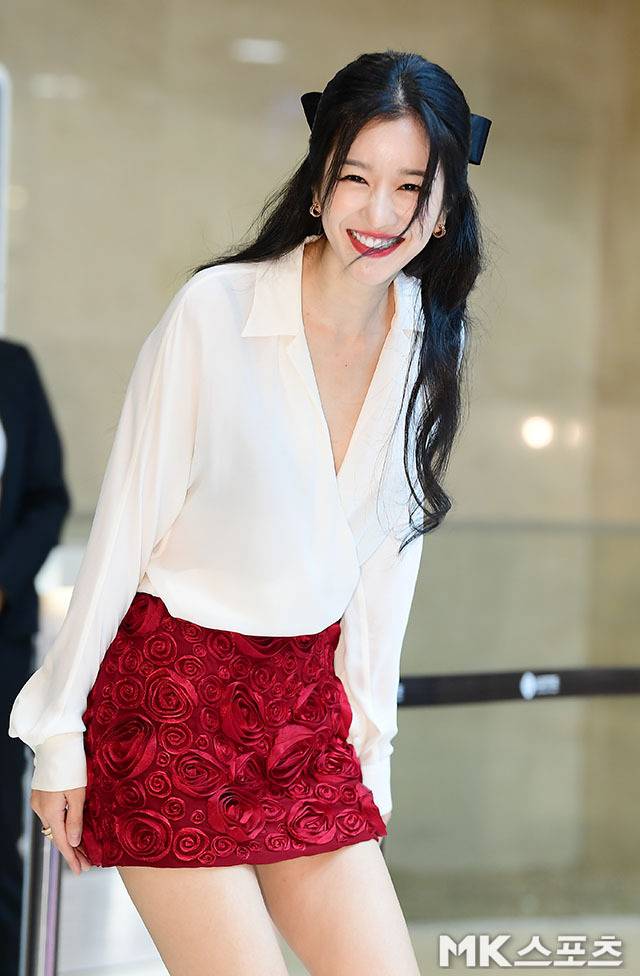 특히 서예지는 레드 플라워 미니스커트를 착용해 강렬하고 우아한 분위기를 자아냈습니다.