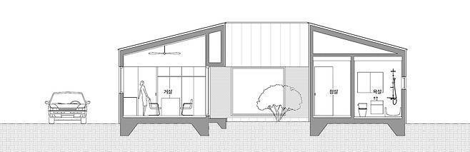 미국에서의 이민 생활을 마치고, 자녀를 독립시킨 후 은퇴한 건축주 부부는 한국으로 돌아와 노후의 준비를 시작했다. 부부만의 집이기에 크진 않더라도 소위 '있을 건 다 있는' 알차고 효율적인 주택이 필요했다. 설계를 맡은 레어스탠다드 아키텍츠를 만난 건축주는 요청과 함께 가장 중요한 콘셉트로 '비용의 절감'을 꼽았다. 이는 곧 주택의 첫 번째 콘셉트가 되었다.