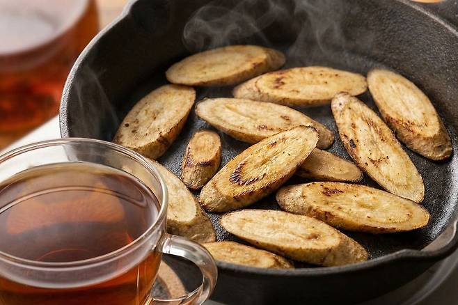 몸에 좋은 약이 입에 쓰다는 말은 우엉차에는 해당하지 않는다. 생우엉 특유의 아린 맛과 찬 성질은 잘 말리고 덖는 ‘로스팅’ 과정을 통해 구수하고 부드러운 풍미로 다시 태어난다. 마치 커피 원두를 볶듯 정성스럽게 볶아낸 우엉은 흙냄새 대신 깊은 고소함을 선사한다.