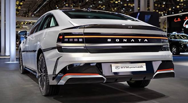 후면부 디자인은 픽셀 기반의 일자형 LED 테일램프가 적용되어 그랜저, 아이오닉 시리즈와 패밀리룩을 이루면서도 쏘나타만의 독창성을 보여줍니다. 픽셀 램프 내부에는 H자형 시그니처 그래픽이 적용되어 시인성을 높이고 고급감을 극대화합니다. 범퍼 하단은 블랙 디퓨저와 듀얼 머플러 디자인으로 마감되어 스포티한 이미지를 완성하며, 넥쏘와 Vision 74 콘셉트에서 영감을 받은 직선과 볼륨의 조합은 레트로 하이테크 무드를 풍깁니다.