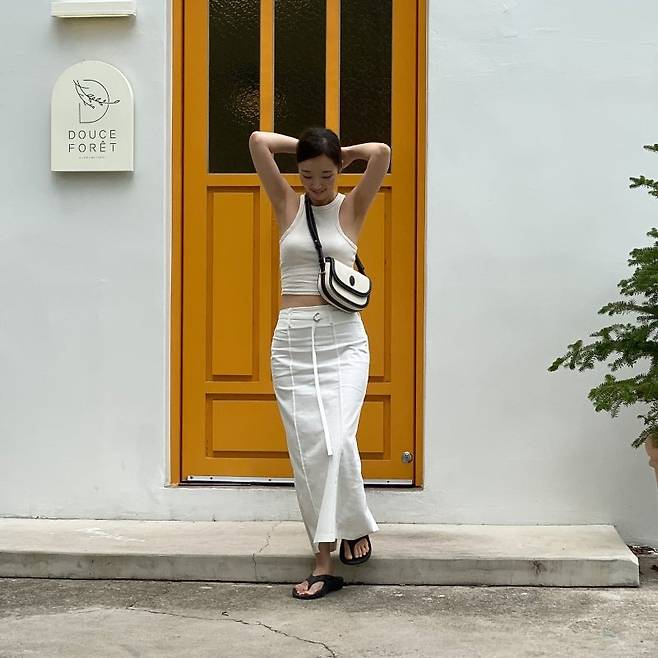 LE는 저의 롱스커트 맛집이라고 할 수 있습니다. 특히 LE의 화이트 롱스커트는 정말 반응이 뜨거웠어요. 이웃님들이 가장 많이 문의해주신 아이템이기도 합니다. 지금은 판매하지 않지만, 최근에 구매한 옐로우 컬러 맥시 스커트도 LE 제품입니다.