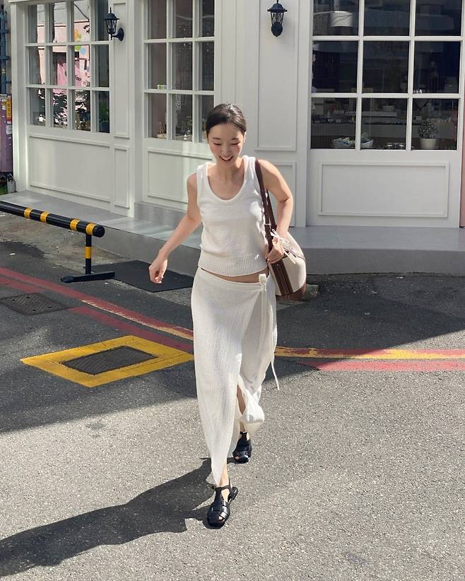 제이리움 니트 롱스커트는 단독으로 입는 것보다 다른 아이템과 레이어드해서 입었을 때 더욱 예쁩니다. 그래서 여름에 활용도가 아주 높아요. 지금은 똑같은 제품을 판매하지 않지만, 더 업그레이드된 버전이 있더라구요.