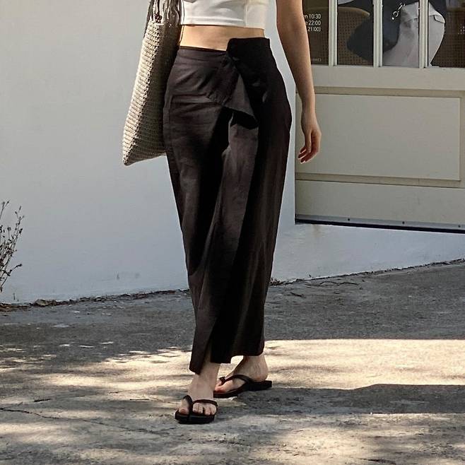 • 신발: 샌들, 스니커즈, 플랫 슈즈, 힐 등 어떤 신발과도 잘 어울립니다. 롱스커트의 분위기에 맞춰 신발을 선택해주세요.