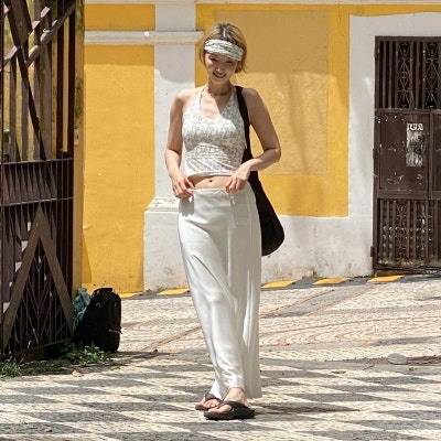 허리선 높이와 맥시한 길이감이 완벽하게 제 취향을 저격했어요. 소재가 얇고 허리선이 심플한 밴딩이라 호불호가 갈릴 수 있지만, 저는 너무 만족합니다. 여름에 정말 자주 입을 것 같아요!