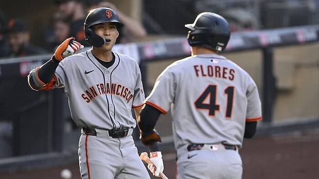 ▲ 홈런 친 플로레스를 축하하는 이정후(왼쪽)