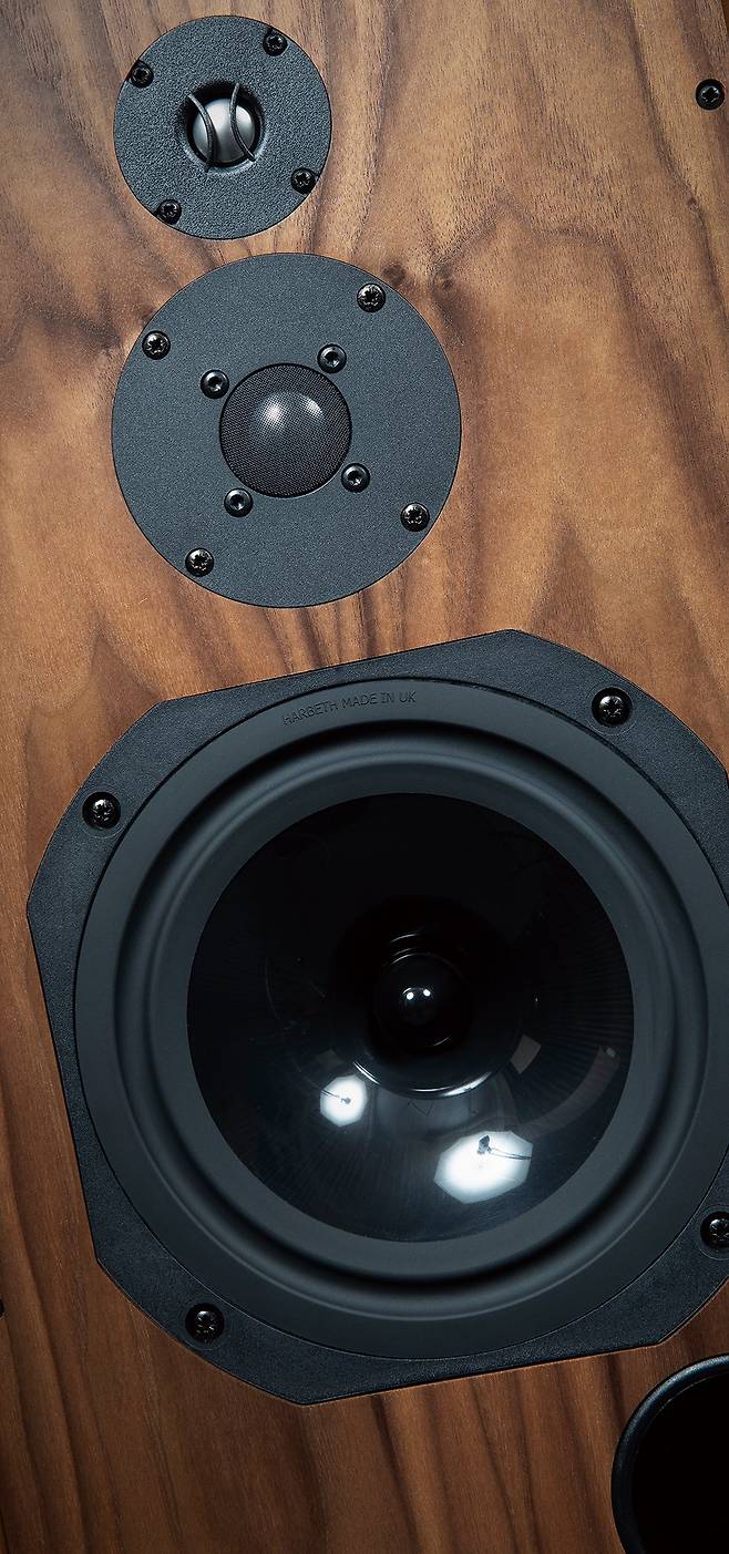 하베스의 가장 큰 특징은 그 고전적이며 우아한 영국제 인클로저일 것이다. 그냥 일반적인 무늬목 마감인데도 색감이 왜 그렇게 맑고 고운지 모르겠다. 그 평범하면서도 은은한 컬러는 누가 함부로 모방하기 힘들다. 그보다도 더 중요한 점은 얇은 인클로저의 6면 두께가 모두 다르다는 점. 울림을 조절하기 위한 치밀한 튜닝의 결과인데, 일률적으로 같은 것이 아니라 제품 크기에 따라 또 다르다. 그래서 다른 제작사에서 모방하기도 힘든데, 그들은 이것을 패널 튜닝이라고 부르며, 공명을 제어하고 낮은 착색과 높은 감도를 유지하는 노하우가 이것에서 기인한다.