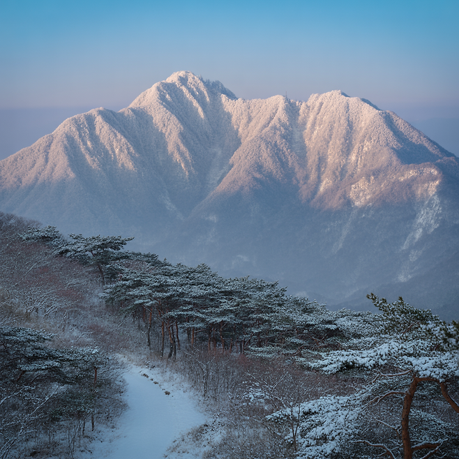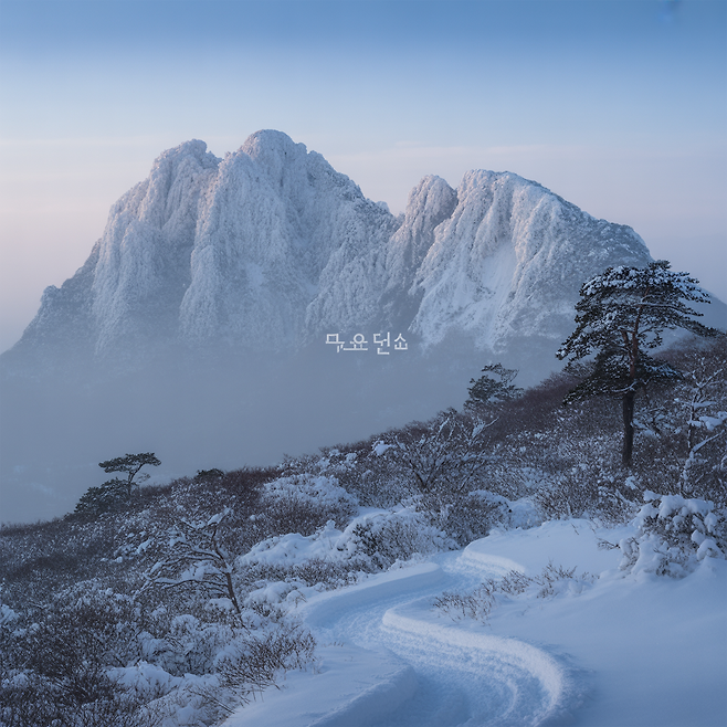 겨울: 하얀 눈으로 덮인 설경과 상고대가 환상적인 분위기를 자아냅니다.