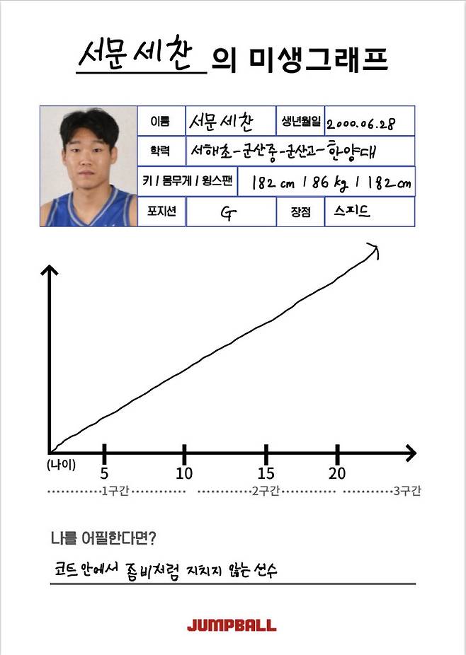 화려한 청소년 시절을 보냈지만, 플레이스타일의 다변화를 꾀한 서문세찬. 그의 농구는 이제부터 시작이다. 이번 드래프트를 통해 프로 무대의 ‘좀비’로 거듭날 수 있을지 지켜보자.