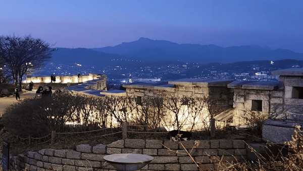 낙산공원의 산책로는 완만한 경사로 이루어져 있어 걷기에 무리가 없는데요. 올라가는 길은 조금 쌀쌀할 수 있지만, 오히려 손을 꼭 잡고 걷기에 더없이 좋은 환경이기도 합니다. 벤치에 앉아 조용히 야경을 감상하거나 성벽을 따라 걷다 보면, 도심 속에서 자연을 그대로 느낄 수 있어 스트레스 해소에도 좋습니다.