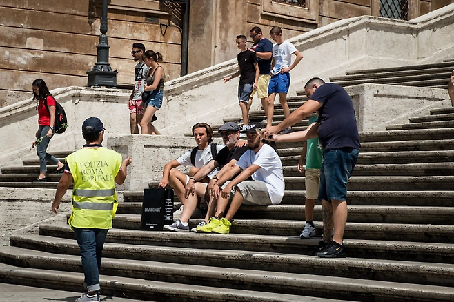 로마의 스페인 광장은 영화 <로마의 휴일>로 유명한 장소입니다. 오드리 햅번이 계단에 앉아 젤라또를 먹던 명장면을 떠올리는 분들도 많을 텐데요. 많은 관광객들이 그 장면을 재현하고 싶어 하며 아이스크림을 들고 계단에 앉아 휴식을 취했지만, 이러한 행동들이 계단에 얼룩과 쓰레기를 남기면서 문제가 커졌습니다. 결국, 이곳에서 음식을 먹거나 계단에 앉는 행위가 금지되었고, 이를 어길 경우 벌금을 내야 합니다.