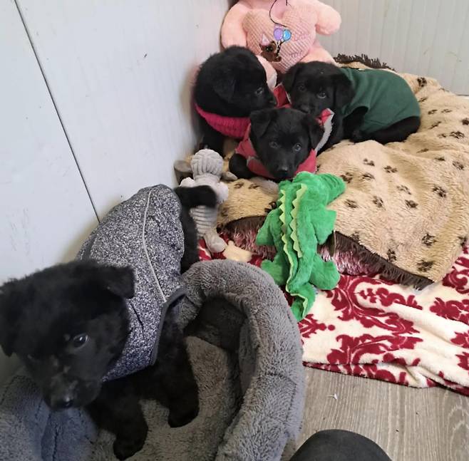 올리버, 보, 토토, 비비엔이라는 이름을 가진 이 개들은 3개월이 될 때까지 오스믹의 보호를 받으며 살다가 3개월이 되면 영국으로 가서 영원한 집을 찾기 시작할 예정입니다.