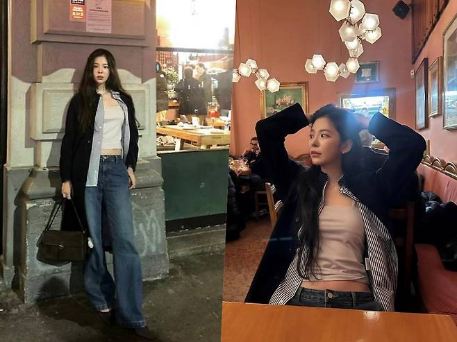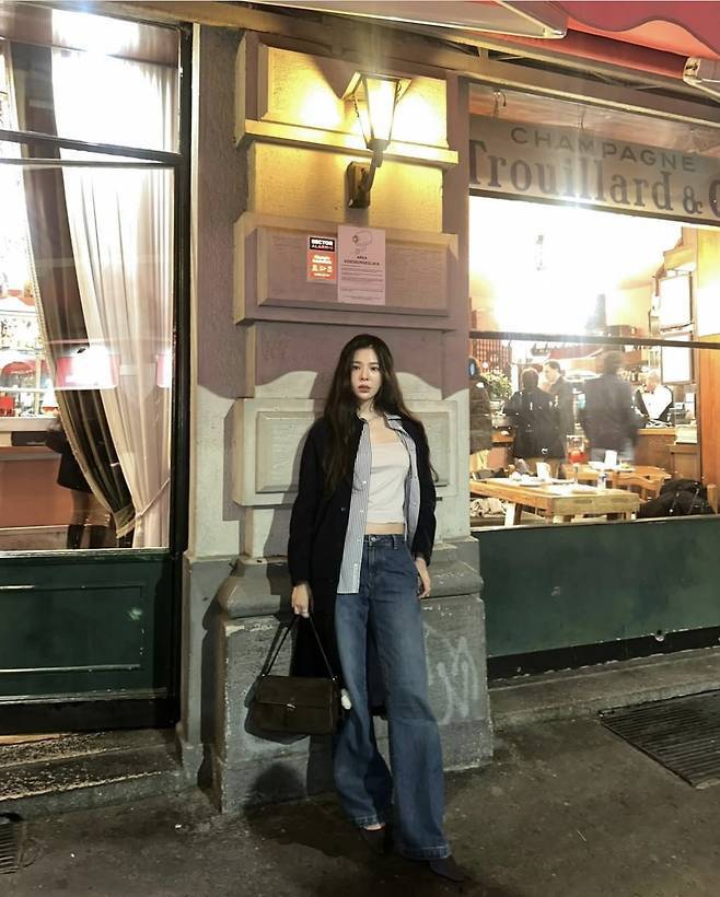 가수 장재인이 여유로운 무드의 유럽 밤거리에서 시크한 빈티지 스트릿룩을 선보였습니다.