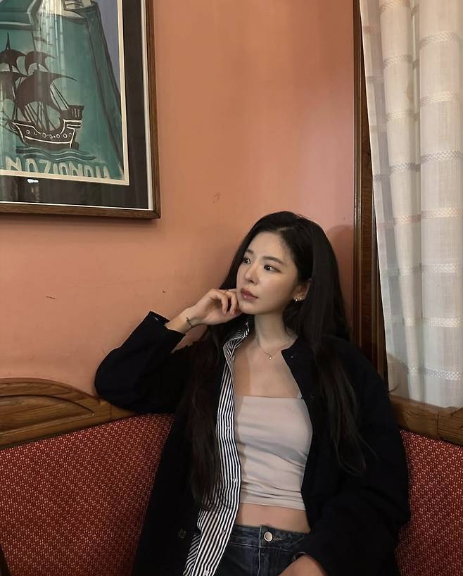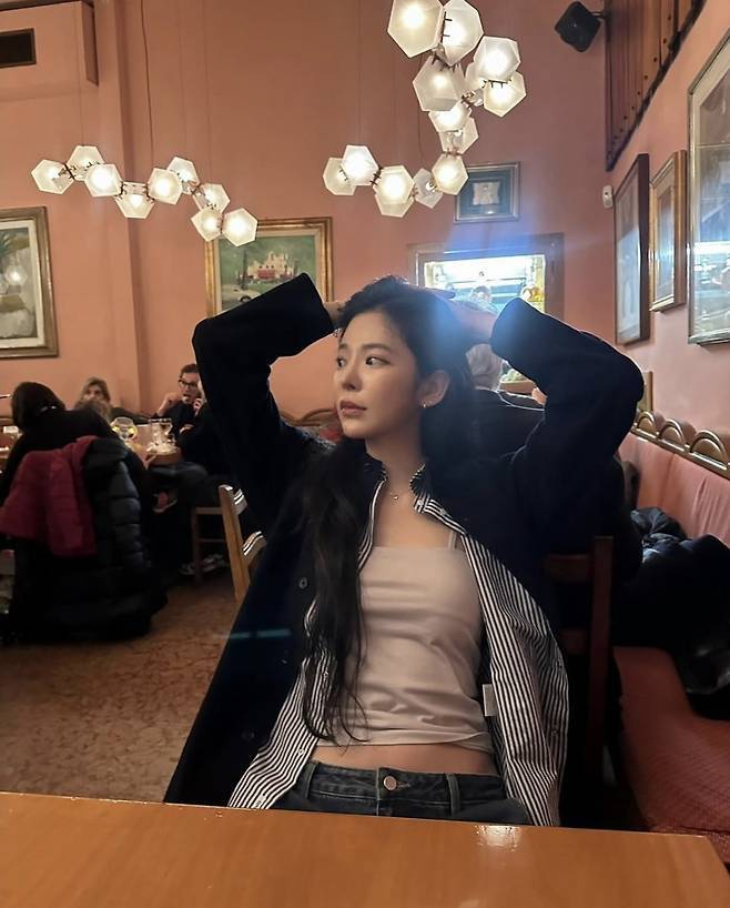 특히 자연스럽게 흐트러진 듯한 롱 헤어와 차분한 메이크업이 룩을 더욱 감각적으로 완성했습니다.