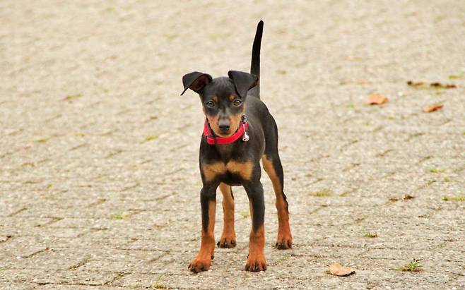미니어쳐 핀셔는 키(체고) 25~32cm, 몸무게 3.6~4.5kg 정도의 소형견입니다. 도베르만과 매우 닮았는데 의외로 유전적으로 큰 연관은 없답니다. 자신감 넘치는 성격이라 소형견의 왕(King of toys)라는 별명도 가지고 있어요.