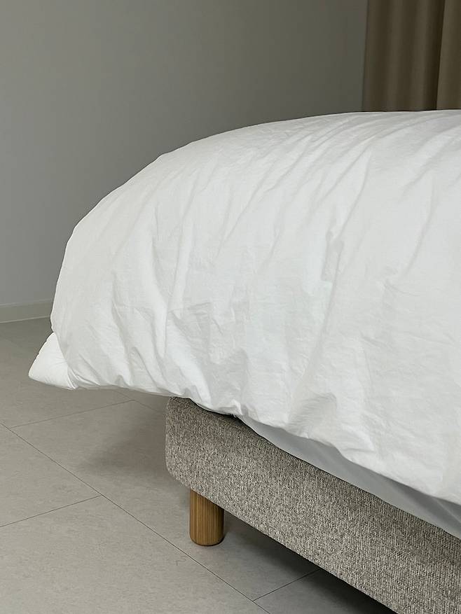 바스락 거리는 호텔 침구를 좋아해서 호텔식 차렵 이불로 구매했어요. 사계절용이라 한여름 빼고는 잘 덮을 수 있어요.