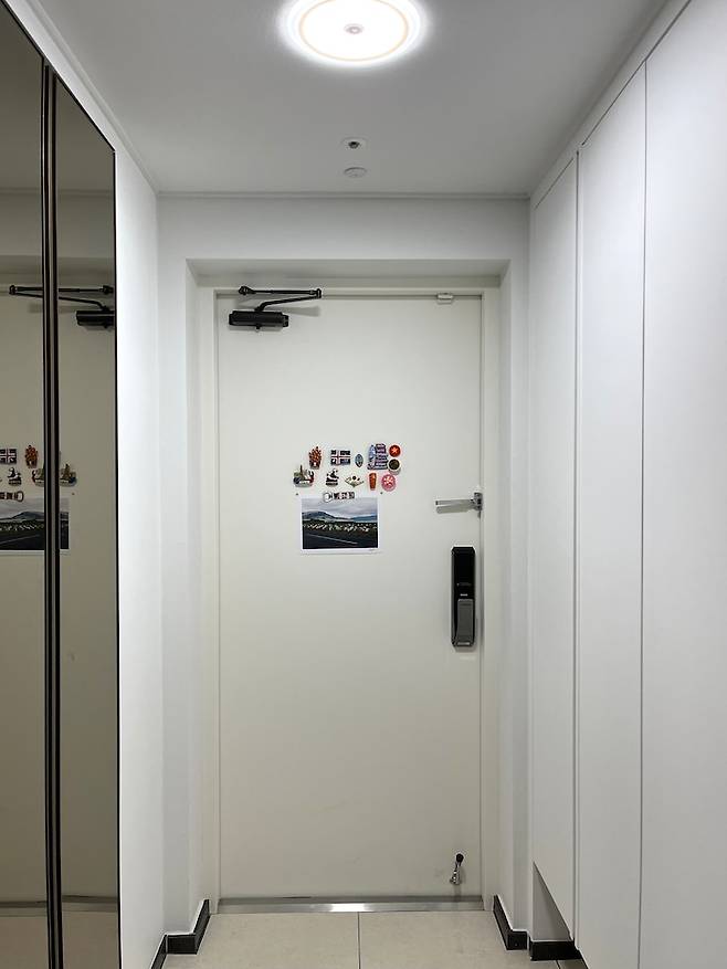 여행지에서 구매한 마그넷으로 현관을 꾸미고 있어요. 이렇게 꾸미니 빨리 다음 여행지에서 이쁜 마그넷을 사고 싶어요. 현관 문을 저희의 추억으로 꽉 꽉 채우고 싶네요😜