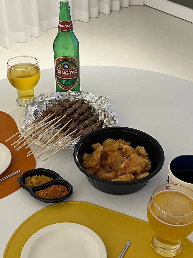 퇴근 후, 휴무일이 같은 날 거실에서 재밌는 거 보면서 맛있는 음식 먹는 게 저희 부부의 요즘 낙입니다. 최근에 종이의 집보면서 (뒷북..^^) 양꼬치, 맥주 한 잔 했어요. 이게 행복이지❤
