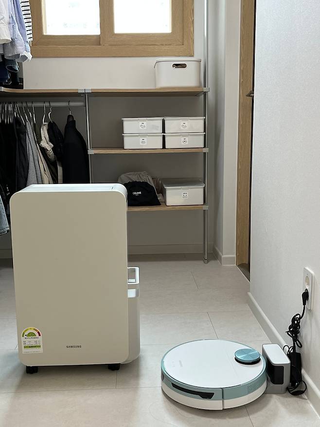요즘 저희 집 효자템 로봇 청소기와 제습기입니다. 물론 삼성 제품이구요. 제습기 너무 이쁘지 않나요? 6리터라 물통 사이즈도 넉넉해요. 기능도, 비주얼도 넘 만족하는 제품입니다. 😉