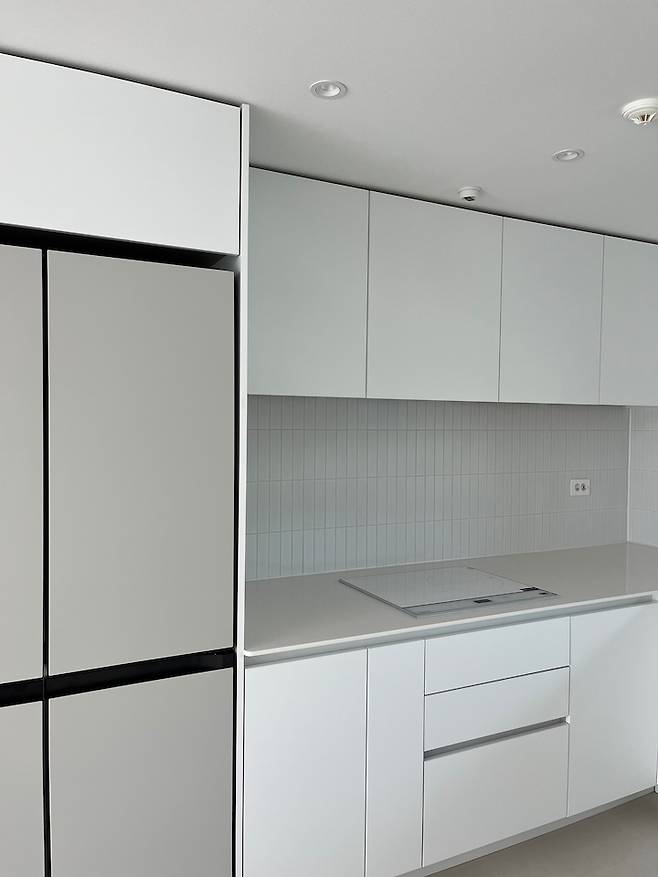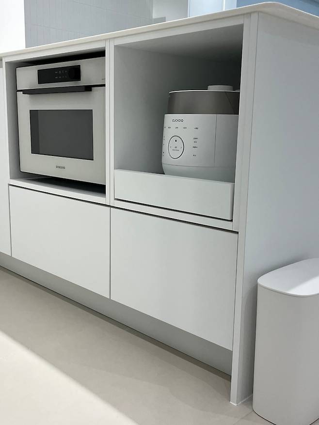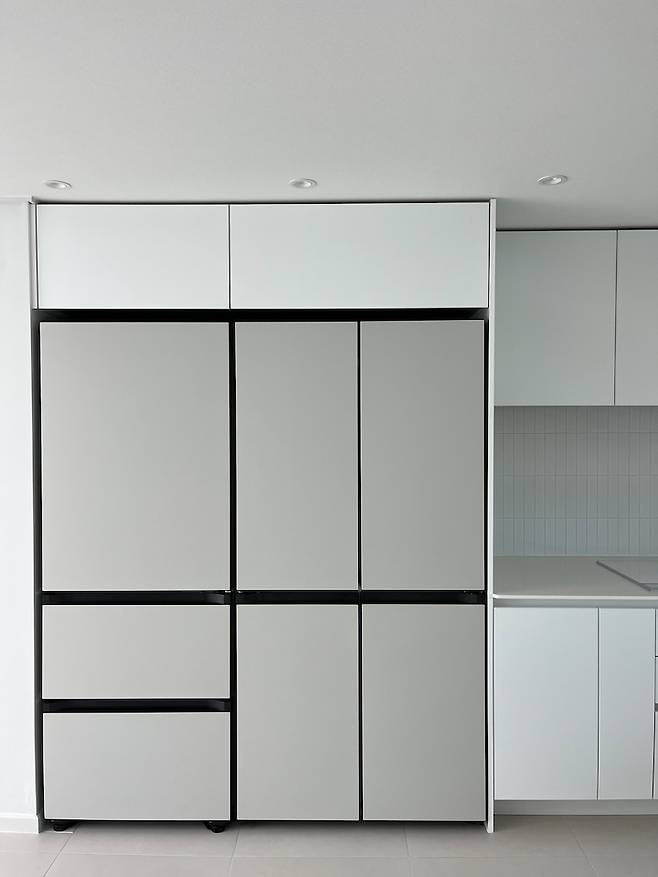 가전은 모두 삼성 제품으로 구매했는데요. 남편이 삼성 디지털 프라자에서 근무하여 구매한 이유가 가장 크지만, 비스포크 키친핏으로 가구와 이질감이 느껴지지 않는 점이 좋았고 삼성 서비스 측면에서 만족도가 높아요. 마치 가구와 가전이 한 세트 같아 보여 눈과 마음이 편안-해요. :)