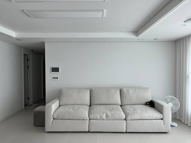 쇼파 양 옆으론 매일 열일하고 있는 공기 청정기와, 최근 들어 구매한 삼성 선풍기가 자리 잡고 있어요.