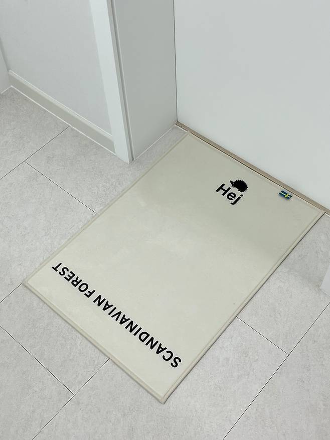 공용 화장실 앞 귀여운 발 매트. 마음에 드는 발매트 찾기가 너무 어려웠는데 우연히 발견한 '스칸디나비안 포레스트' 브랜드의 제품이에요. 침실 화장실 발 매트도 동일 브랜드의 제품인데 너무 마음에 들어요. Hej =안녕하세요 라고 합니다. :)