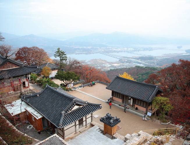 두물머리가 시원하게 내다보이는 수려한 전망을 자랑하는 수종사는