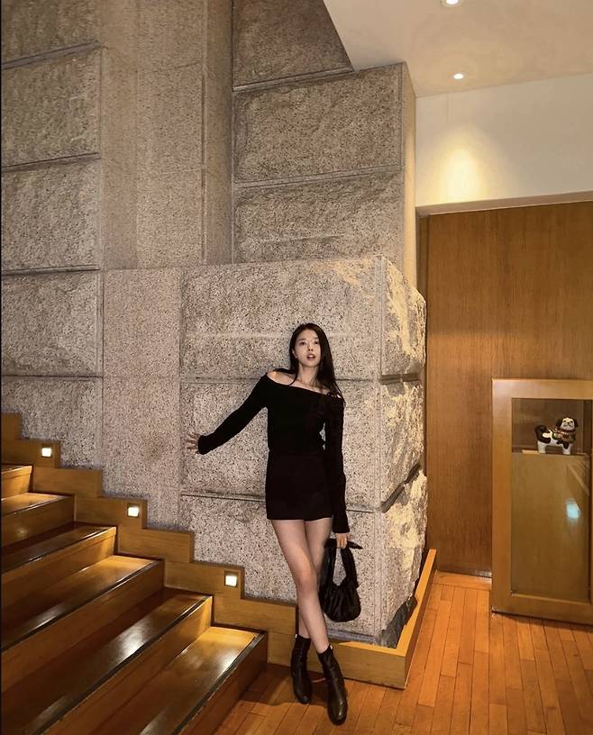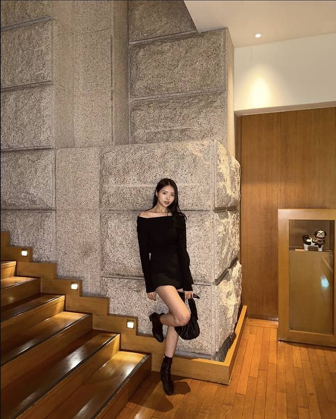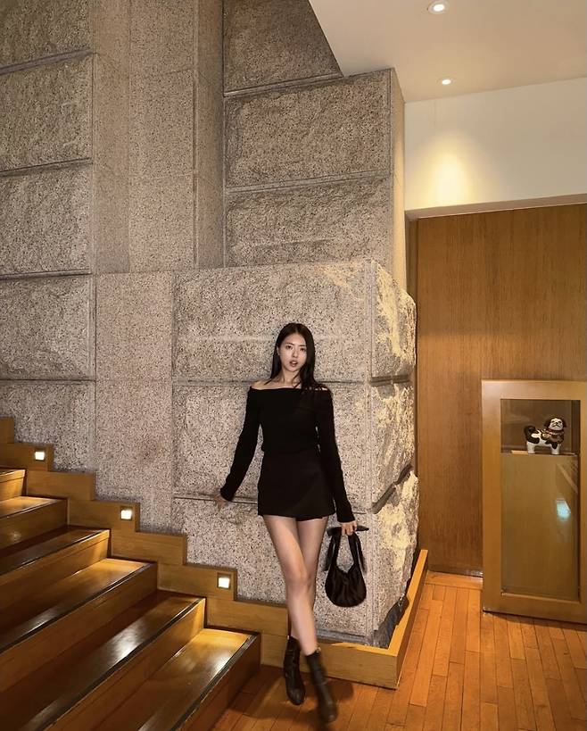 임나영은 바비인형 실루엣을 연상케 하는 올블랙룩으로 강렬한 스타일링을 완성했습니다.
