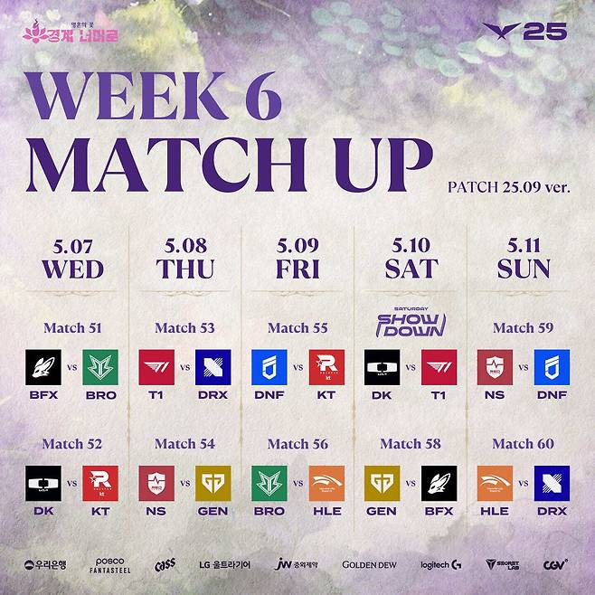 LCK 정규 시즌 6주 차부터는 25.09 패치가 적용되며 소환사의 협곡은 녹서스 테마에 이어 '아이오니아' 테마로 새롭게 단장한다. 이번 패치에서는 공허 유충의 등장 시점 및 횟수 변경, '고통의 아타칸'으로 통합된 아타칸의 효과 변경 등 대형 오브젝트 관련 변화가 예고돼 있다.