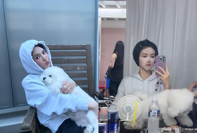 특히 반려견 루비를 품에 안고 입술을 살짝 내민 표정은 40대 중반이라고는 도저히 믿을 수 없는 '귀여움'과 '청순함' 그 자체였다.