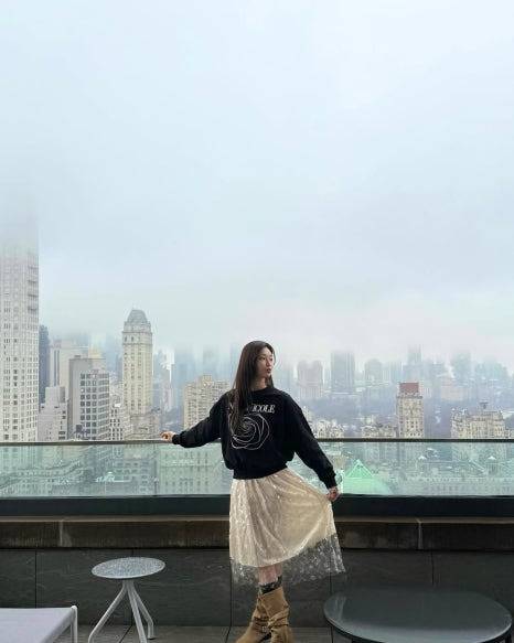 최근 인스타그램에 올린 사진에서는 뉴욕의 한 호텔 로비에서 감각적인 시스루 룩을 선보이며 도시적 감성과 봄의 로맨스를 한껏 담아냈답니다.