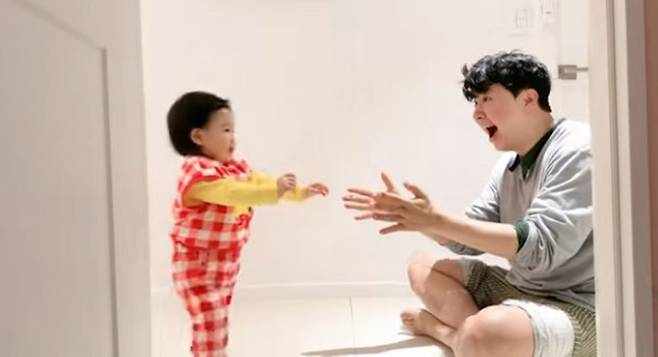 19일 온라인 채널 '박수홍 행복해다홍'에선 '재이 아빠에게 혼자 걸어가다! 내 생애 이런 순간이..14개월아기 첫 걸음마 감동 눈물 행복 가득한 육아 가족 일상 브이로그'라는 제목의 영상이 업로드 됐다.