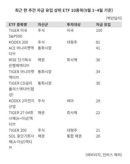 한화투자증권 한시화 연구원은 “지난주(1~4일 기준) 국내 ETF 시장에 미국 증시를 추종하는 ETF를 중심으로 3억4000만달러(약 4700억원)가 유입됐다"며 "성장주의 단기 부담이 커지면서 투자자들이 방어적이면서도 저평가 매력이 있는 가치주와 대형주로 이동하고 있다”고 설명했다.