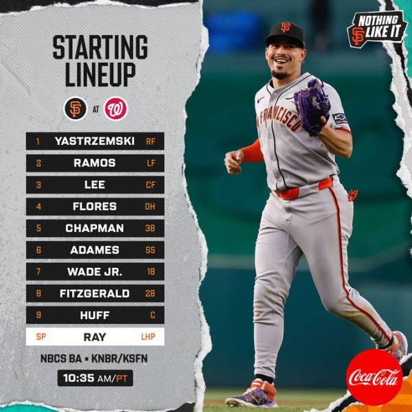 이날 샌프란시스코는 마이크 야스트렘스키(우익수)-엘리엇 라모스(좌익수)-이정후(중견수)-윌머 플로레스(지명타자)-맷 채프먼(3루수)-윌리 아다메스(유격수)-라몬테 웨이드 주니어(1루수)-타일러 피츠제럴드(2루수)-샘 허프(포수)로 라인업을 꾸렸다. 선발투수는 무패 행진을 이어가고 있는 좌완 에이스 로비 레이(6승, 평균자책점 2.67)이 출격한다.
