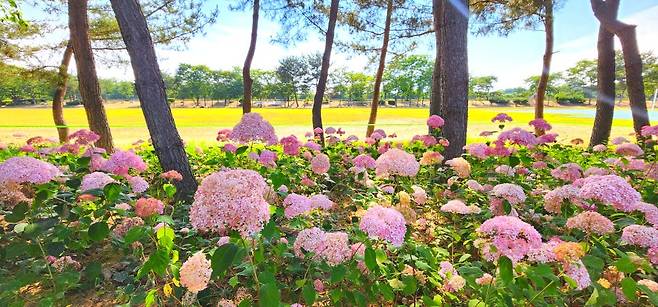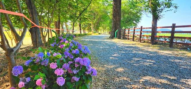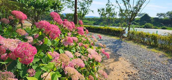 무엇보다 요즘 같은 여름에는 공원 곳곳에 수국이 화사하게 피어 또 다른 매력을 더해주고 있어요. 분홍빛, 보랏빛으로 피어난 수국이 섬 전체를 장식하고 있어 인생샷을 남기기에도 안성맞춤입니다. 수국길을 따라 산책로를 걷다 보면 계절의 정취가 그대로 느껴지고, 무더위를 잠시 잊게 되는 기분이에요.