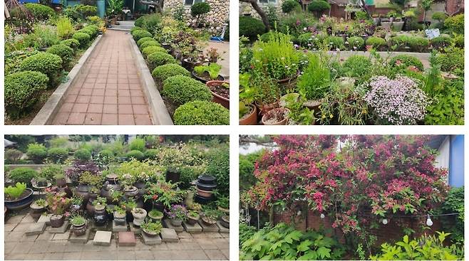 | ▲ 마당 주변에 심긴 식물 위 왼쪽부터 장미, 설란, 동자꽃, 인동초다, 정말 아름다운 꽃이 마당에 그득했다. |
