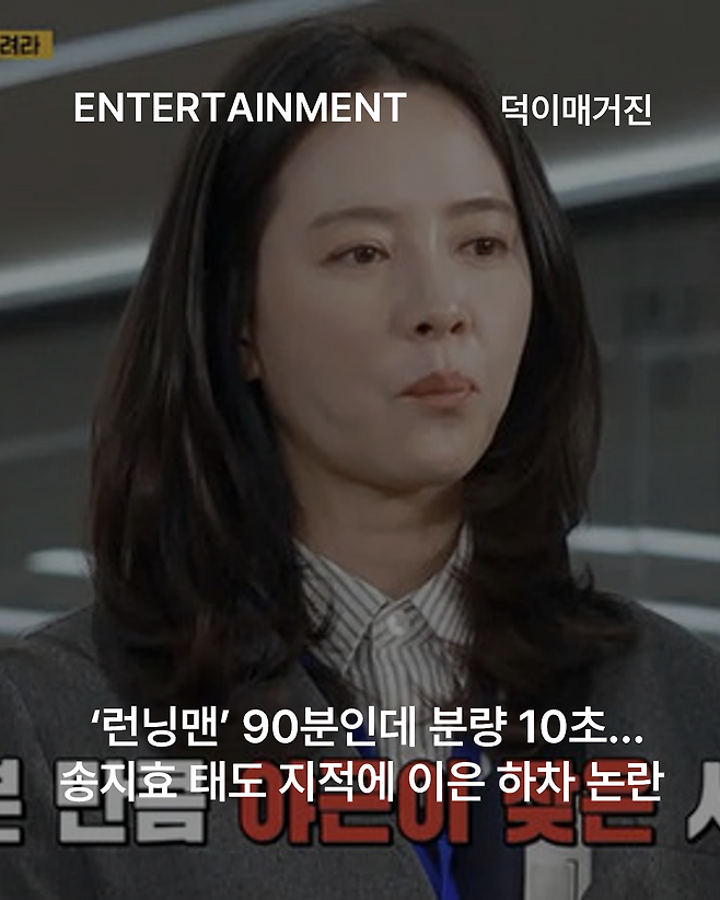 이번 논란을 계기로 송지효가 다시 한 번 ‘런닝맨’에서 존재감을 되찾을 수 있을지 관심이 이어지고 있습니다.