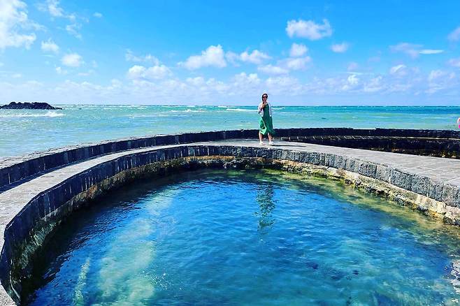 옆에 위치한 카페에서 청굴물과 바다 풍경을 감상하면서 달콤한 디저트를 맛보는 것도 좋을 것입니다. 밀물 때는 용천수가 바닷속으로 사라지기 때문에 시간에 맞춰 방문하는 것을 추천해 드립니다.