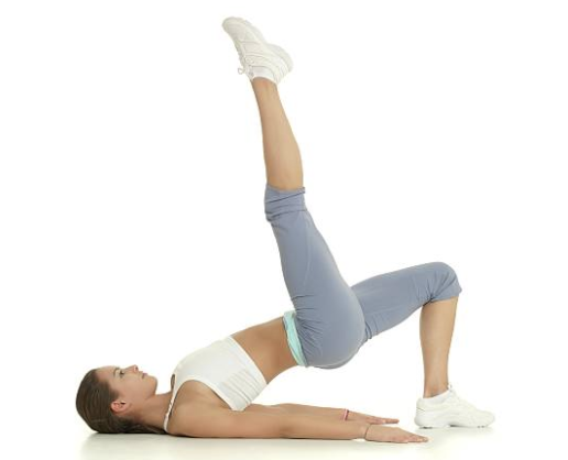 2. 동작 시작: 숨을 내쉬면서 엉덩이와 허벅지 뒤쪽에 힘을 주어 양 다리를 천천히 들어 올립니다. 이때 몸통과 다리가 일직선이 되는 지점까지만 들어 올리는 것이 중요합니다. 과도하게 높이 들어 허리가 꺾이는 것을 반드시 피해야 합니다.
