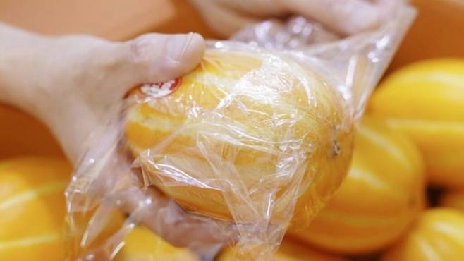 여기에 지퍼백이나 밀폐용기 등을 이용해 참외를 한번 더 감싸 주세요. 이렇게 보관하면 수분이 날아가지 않아, 다 먹는 날까지 처음 그대로 신선함을 느낄 수 있습니다.