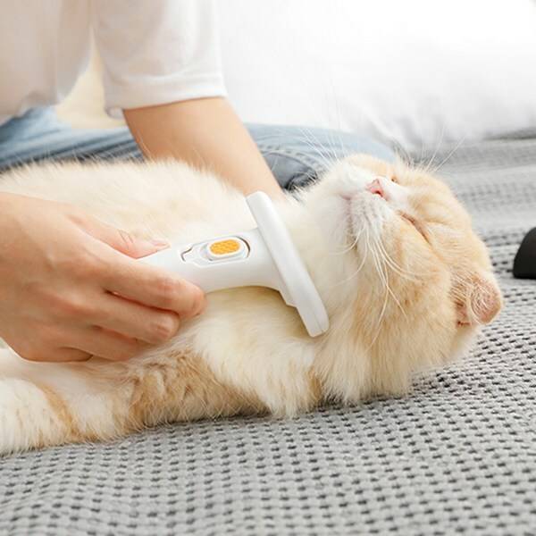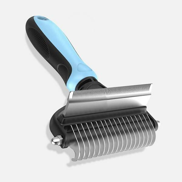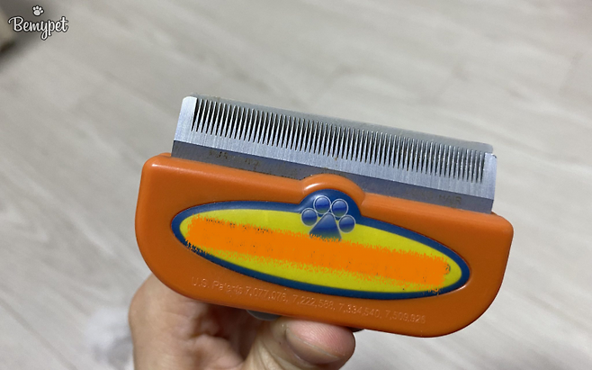 죽은 털을 제거하는 데 특화된 브러쉬도 있어요. 심하게 엉킨 털을 빗거나 세게 빗으면 아파할 수 있으니 주의가 필요합니다. 또, 피모에 자극을 줄 수 있어 너무 자주 사용하기보다는 일주일에 1~2회 정도만 사용하는 걸 추천해요.
