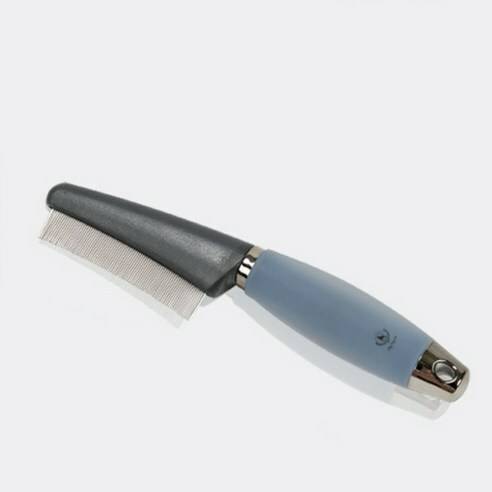 참빗과 거의 동일한 형태의 빗이에요. 빗살이 아주 촘촘합니다. 평소 강아지 눈꼽을 뗄 때 사용하기 좋아요. 털 사이에 낀 작은 이물질들을 제거하기도 좋아서 진드기, 벼룩 제거 용 빗으로도 많이 사용합니다.