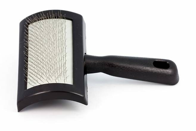 슬리커 브러쉬는 가는 핀이 촘촘하게 모여 있는 브러쉬로, 엉킨 털을 풀고 노폐물을 제거하는 데 좋아요. 모든 견종에게 추천하는 빗입니다. 강아지 크기와 털 길이에 따라 빗 크기, 핀 길이를 골라 사용하면 더 좋아요.