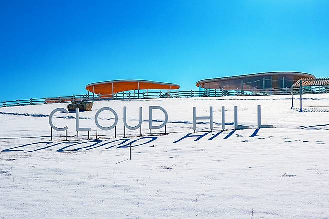눈 덮인 목장의 풍경을 바라보며 따뜻한 음료를 즐길 수 있어 몸과 마음이 따뜻해진다.