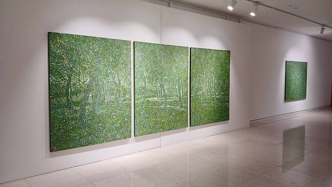 작품을 가까이에서 바라보면 추상화와 다름없지만, 거리를 두고 찬찬히 바라보면 어느새 ‘나’를 둘러싸고 있는 풍경과 대상들이 나타난다.