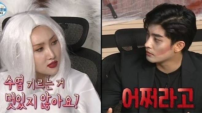 화사는 다시 한번 "수염 기르는 거 멋있지 않냐"라고 성훈에게 말을 건넸지만, 성훈은 "어쩌라고"라고 정색한 표정을 지었다가 웃었다.