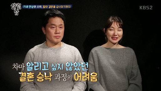 이어 “우리 집안에서 제일 크게 반대했다. 7년이나 나이 많은 아저씨랑 어떻게 사느냐고 했다”라고 덧붙였습니다. 이를 들은 17살 연하 아내 근혜 씨는 “나도 오빠가 있었으면”이라며 말끝을 흐려 웃음을 안겼습니다.