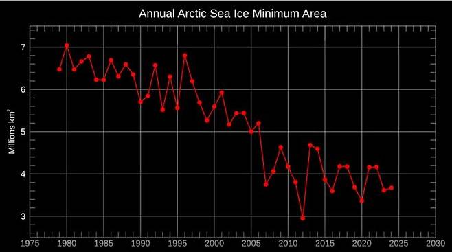 포항공대 민승기 교수 연구팀에 따르면 최신 기후 모델들이 해빙 감소세를 오히려 과소평가하고 있고, 이르면 2030년쯤에 해빙이 전부 녹아 없어질 수 있다고 분석했습니다. 연구팀은 실제 관측된 해빙 감소세를 이용해 기후 모델들을 보정했습니다. 그 결과 IPCC 보고서에선 예측하지 못한 결과들이 나왔습니다. 탄소 배출이 적은 '낮은 배출 시나리오인 SSP1-2.6'에서도 21세기 중반에 해빙이 전부 사라질 수 있다고 내다봤습니다. 기존 IPCC 6차 보고서에서는 낮은 배출 시나리오에선 해빙이 전부 사라질 걸로 예측하진 않았기 때문에 충격적인 연구 결과였습니다.