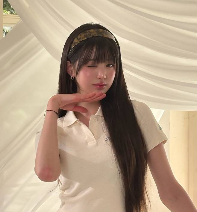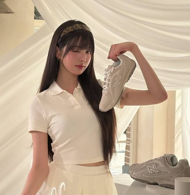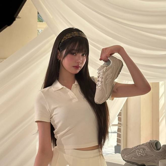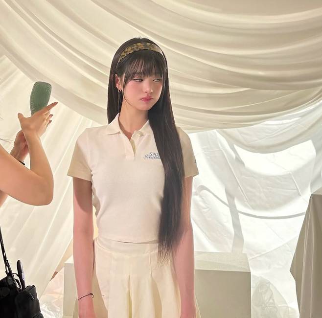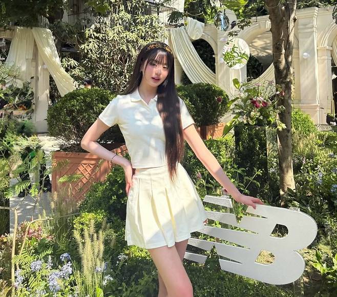 이날 그녀는 화이트 톤의 미니 플리츠 스커트와 크롭 피케 셔츠를 매치한 채 등장해, 청순하면서도 청량한 분위기를 완벽히 뽐냈습니다. 햇살에 어울리는 화사한 피부 톤과 긴 생머리, 여기에 더해진 레오파드 패턴 헤어밴드까지 더해져, 디테일 하나하나도 눈을 뗄 수 없을 만큼 완벽했습니다.